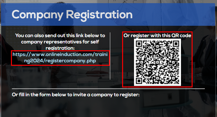 A company account can be registered two ways, direct by the Admin of the Online Induction Portal or inviting the Company to self register using your dedicated link.