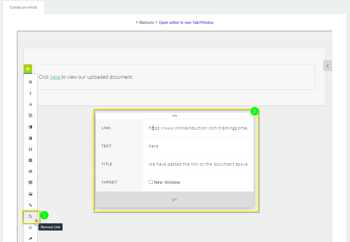 Once the link is copied, navigate to the Messaging Center and create a new mailout: