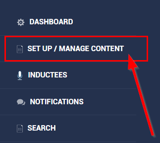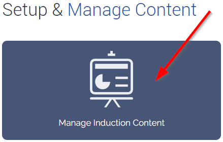 To find the Preview Induction area, select Set Up / Manage Content from the lefthand side of you Admin Dashboard.