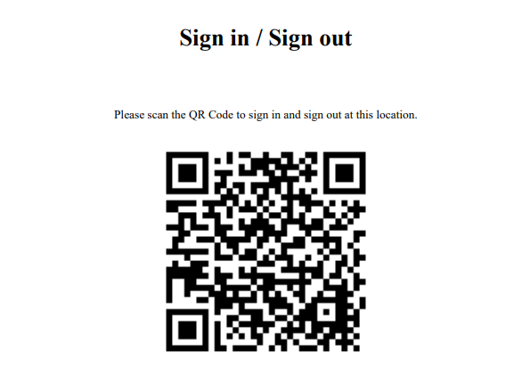 Site visitors can sign in and out by using their smart device camera. Simply scan the QR code on the poster and follow the prompts.